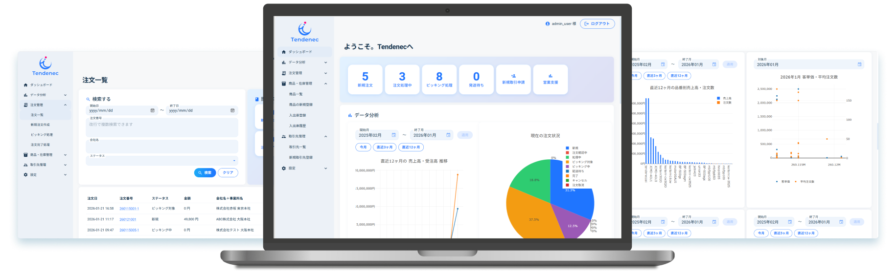 Tendenecは、受注・在庫・商品・倉庫管理までをひとつのシステムで完結できる販売管理プラットフォームです。